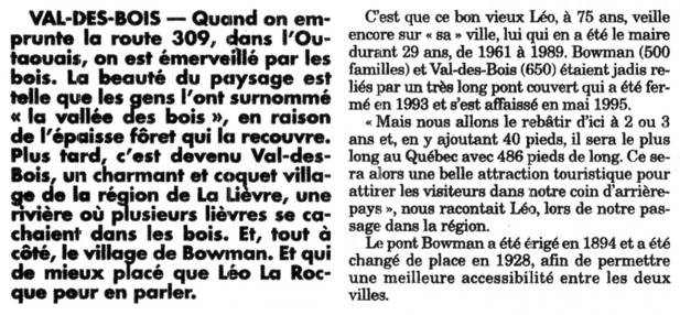 Source : Le Droit, Cahier La Région, mard le 25 avril 1995, p. 4