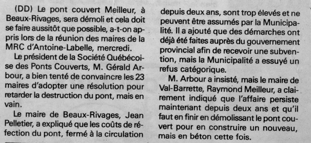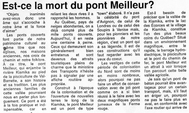 Vous trouverez aussi ci-bas 2 articles de journaux sur le pont Meilleur.