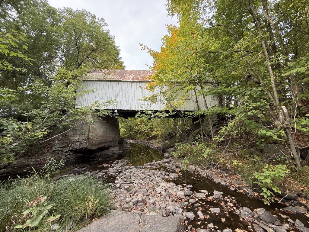 Le billet du jour contient les dernières photos envoyées par notre ami Richard lors de sa récente tournée de fin d’année. Cette fois, on se retrouve à Valcourt au pont Cousineau, un joli pont privé construit en 1888. La barrière devant le pont était fermée afin d’empêcher les trop curieux de s’avancer sur le terrain. La structure enjambant le ruisseau Brandy n’est pas toujours déneigée l’hiver puisqu’il existe un autre accès à la propriété. Bien qu’il soit privé, il est possible d’obtenir de magnifiques points de vue sur le pont qui est surveillé par caméra. Merci à Richard pour sa précieuse collaboration.