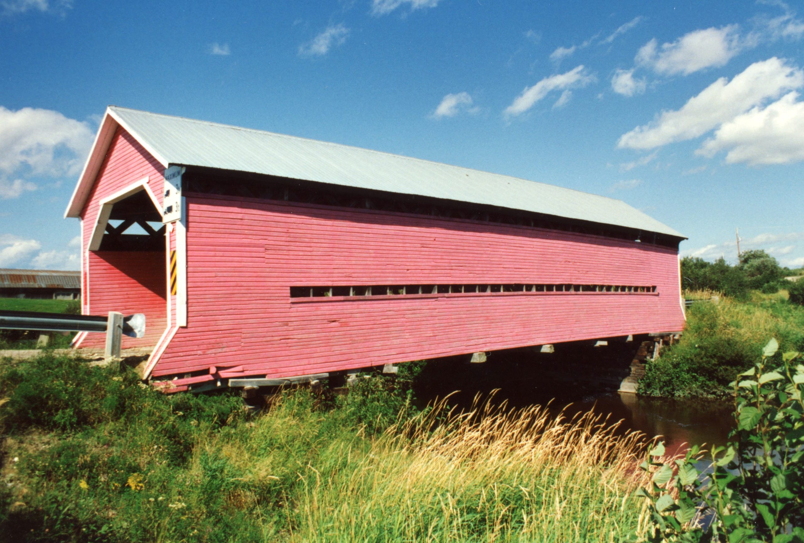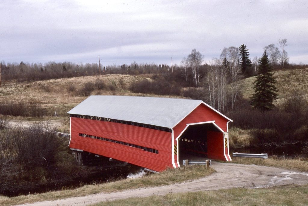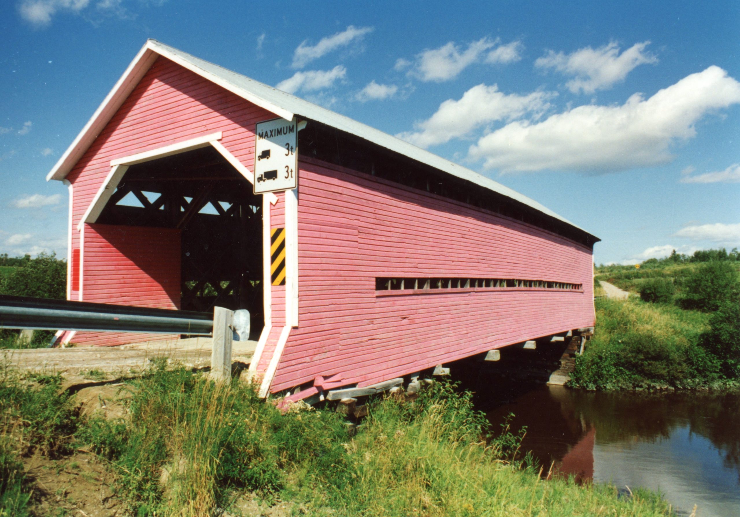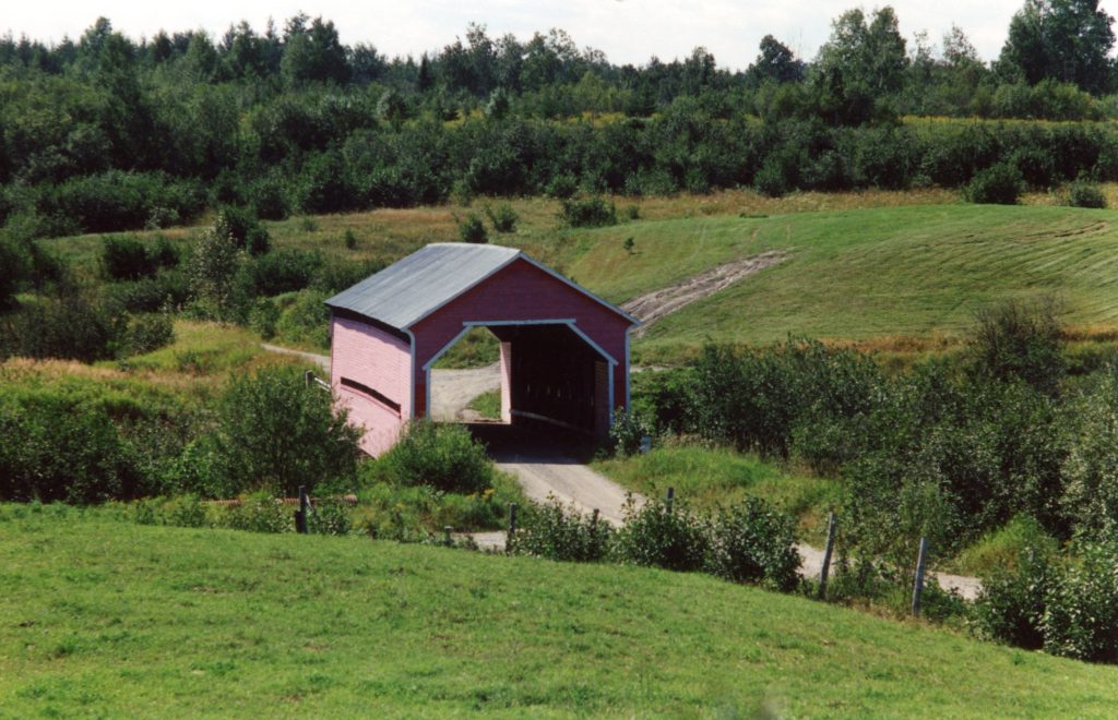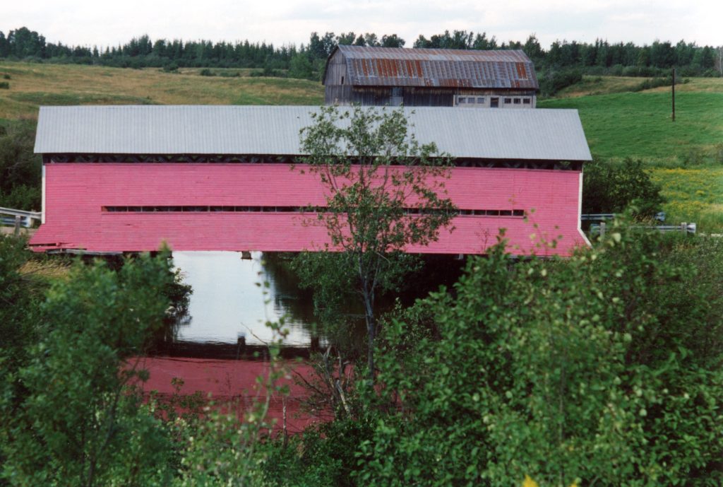 Il y avait un bon moment que je n’avais pas publié de photos provenant des archives d’André Pelletier. Les clichés du jour nous conduisent au pont Rouge de Ste-Jeanne-d’Arc, principalement en 1993 à l’exception d’un datant de 1986. On peut remarquer les jets d’eau aux portiques, lesquels sont disparus lors des travaux de 1995. D’ailleurs en observant les photos, on peut voir que les culées avaient bien besoin d’une restauration. L’environnement du pont a aussi bien changé depuis ce temps, à commencer par la colline près du pont. La grange s’est aussi effondrée depuis quelques années. Le pont Rouge en est un que je visite chaque année.