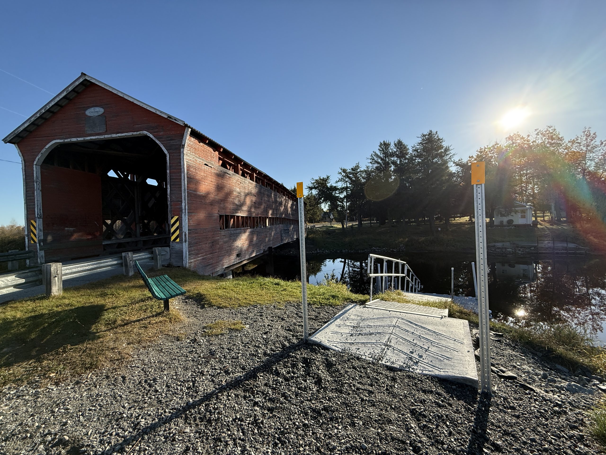 Situé à côté d’un grand stationnement, un sentier pédestre de 1 km et une rampe de mise à l’eau.