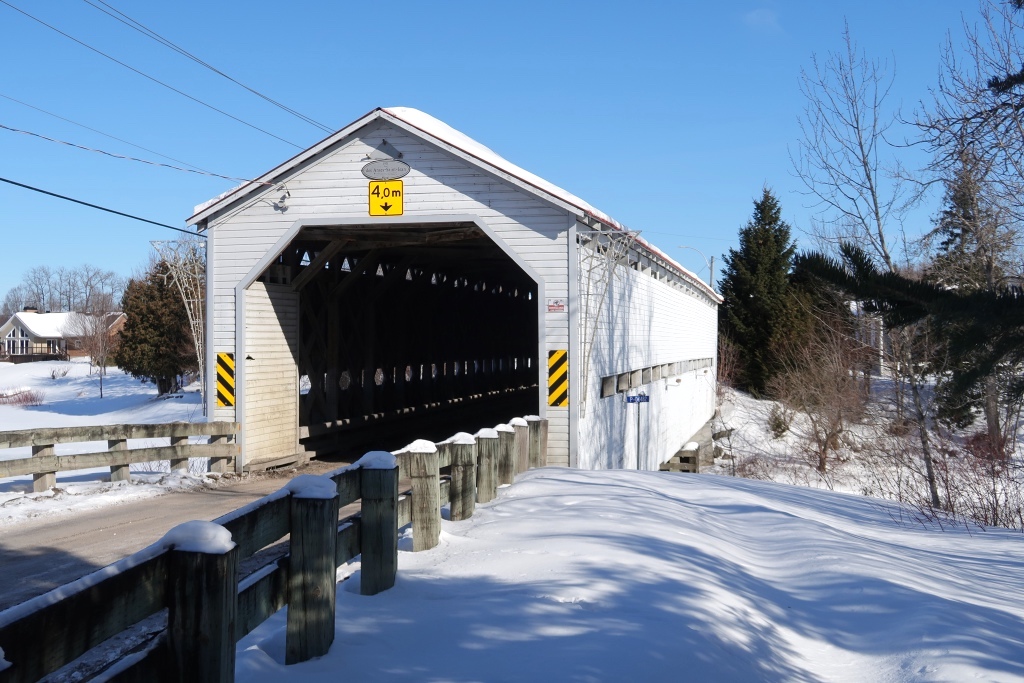 Le nom de ce pont couvert a été modifié en janvier 1996 par la Commission de toponymie du Québec en remplacement de « Pont des Anses St-Jean ».